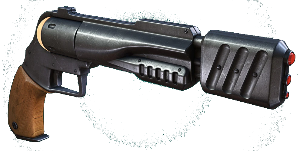 Weapon of Satedan design, composed of three barrels that fire bursts of red energy. The hardware is reasonably heavy, usually forcing the user to aim with two hands.