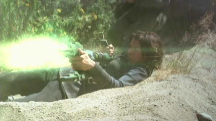 A plasma repeater is a rapid-fire energy weapon built into the wrist of Kull Warriors suits. They fire a blast similar to that of the staff weapon, only smaller and with a high rate of fire, rivaling that of a machine gun.